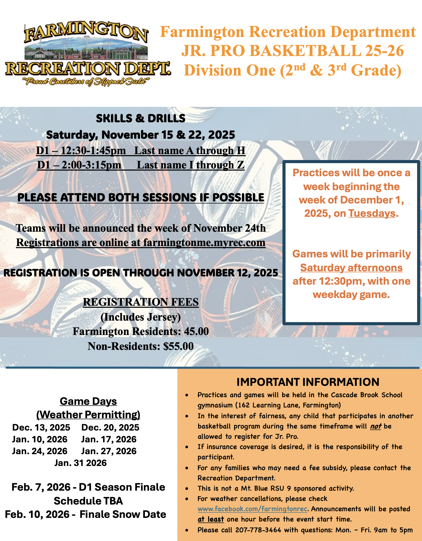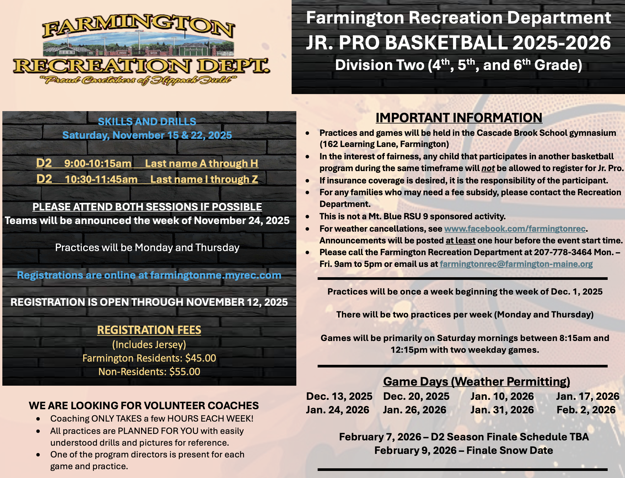 D1 Jr. Pro Basketball - 2nd & 3rd grade D2 Jr. Pro Basketball - 4th, 5th, & 6th grade